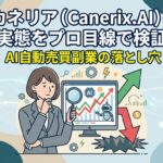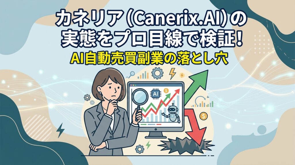 カネリア(Canerix.AI)のAI自動売買副業を検証。特商法不備、無登録投資誘導、出金トラブル口コミが懸念。金融法規制の観点から高リスクと判断。安全チェックリスト付き。(98文字)