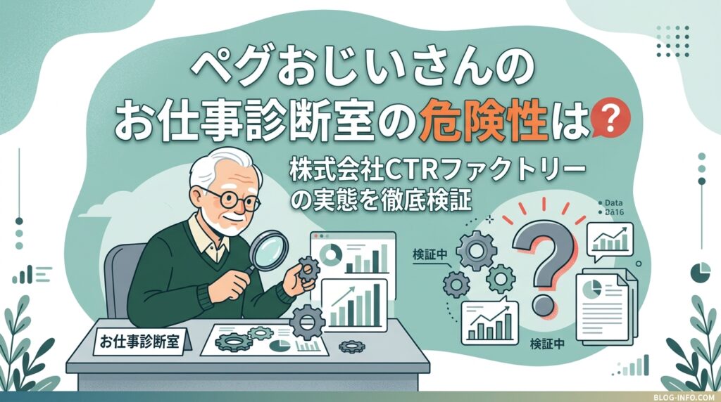 ペグおじいさんのお仕事診断室はAI診断を謳うが、運営の株式会社CTRファクトリーが登記不明で特商法不備。口コミで高額プラン・借金誘導の被害多発。警戒を推奨。安全な副業は別途確認を。(98文字)